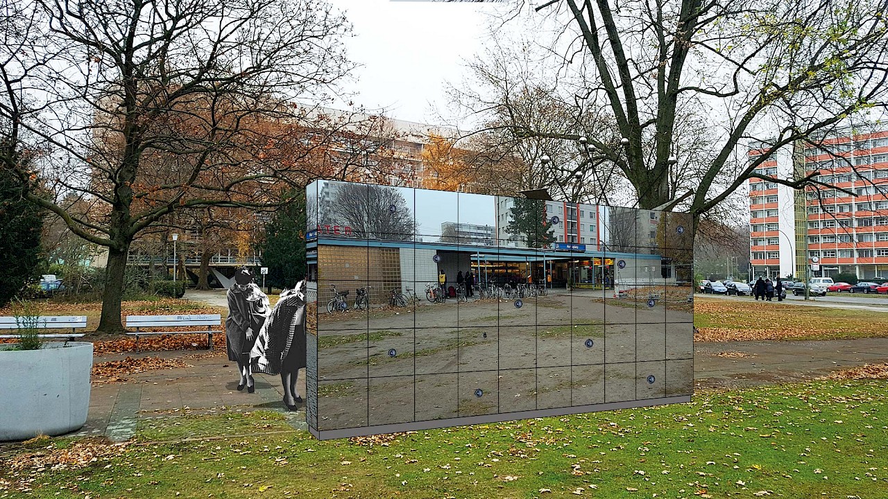 The starting point for the work is the peculiar discrepancy between the Hansaplatz and the surrounding residential district and which can clearly be felt on the Hansaplatz. The spatial and social activities on the square are not in harmony with the spatial and social activities in the middle-class and highly manicured post-war modernist residential district – which still has the neat and institutionalised feel of an architectural exhibit. It is as there were an invisible border running around the area of the U-Bahn station, and a completely different attitude to public space is expressed on either side of it.