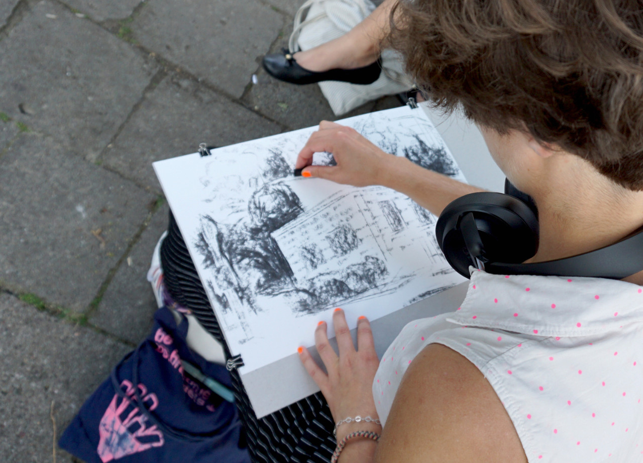Based on the format of the drawing circle popular in the GDR, artist Magda Voerster is offering a drawing course on a total of eight consecutive Thursdays, aimed at anyone who likes to draw. Together, they will take a closer look at the Karl-Marx-Allee and use various techniques to sharpen their own eye.